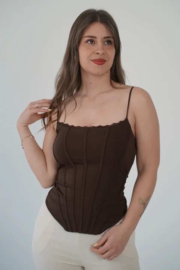 Top tipo corsé, talla única de la XS hasta la L aproximadamente.