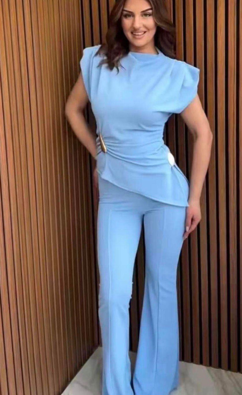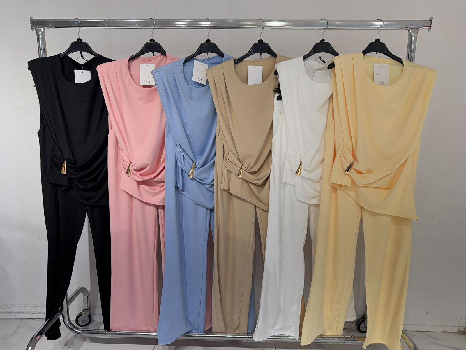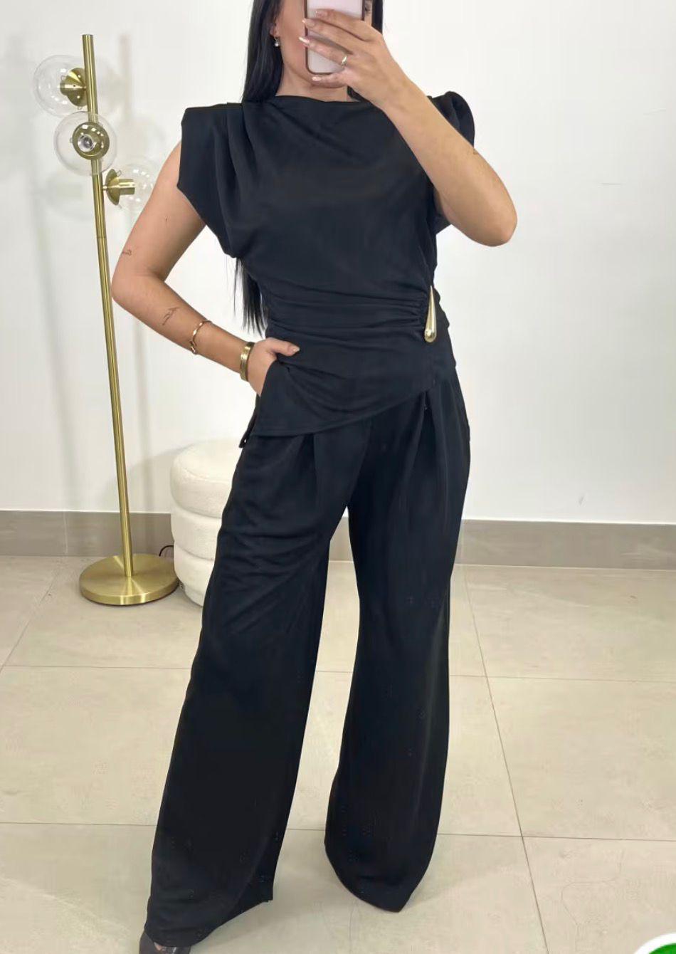 Conjunto blusa hombreras, talla única de la XS hasta la L aproximadamente.