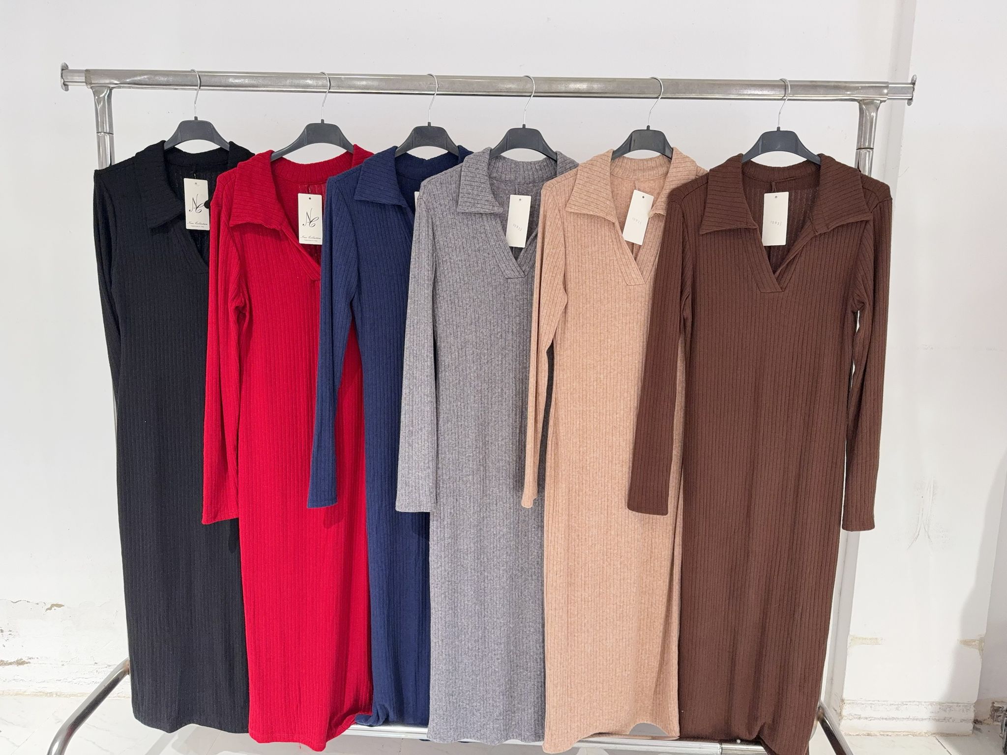 Vestido de punto, talla única de la XS hasta la L aproximadamente.
