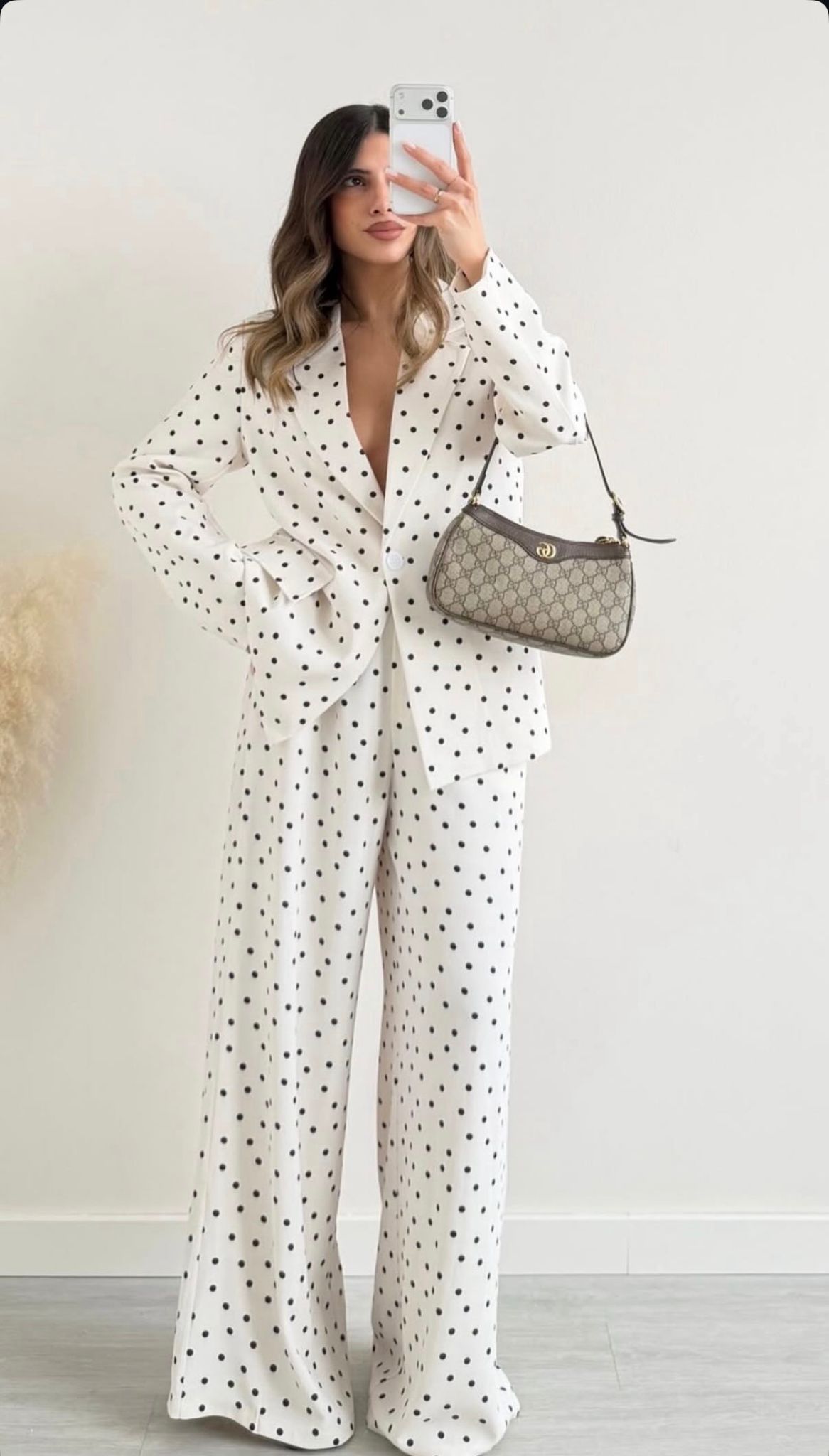 Conjunto satinado, talla única,desde la XS hasta la XL aproximadamente.