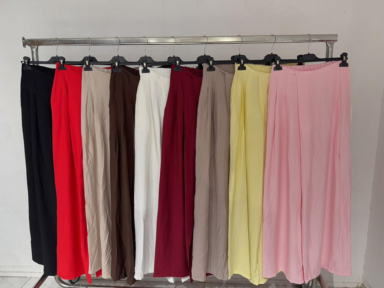Pantalón pata ancha, talla única de la XS hasta la L aproximadamente.