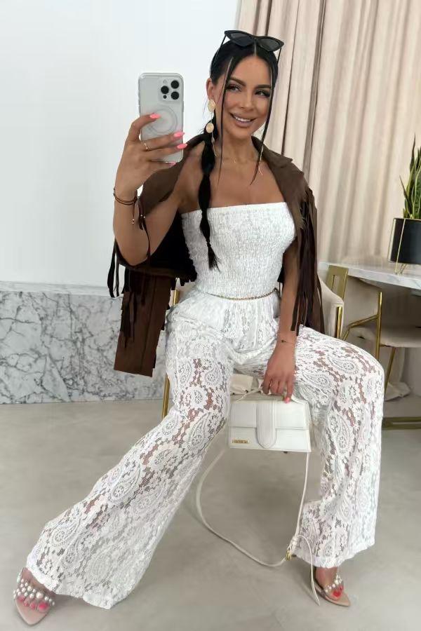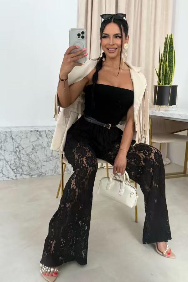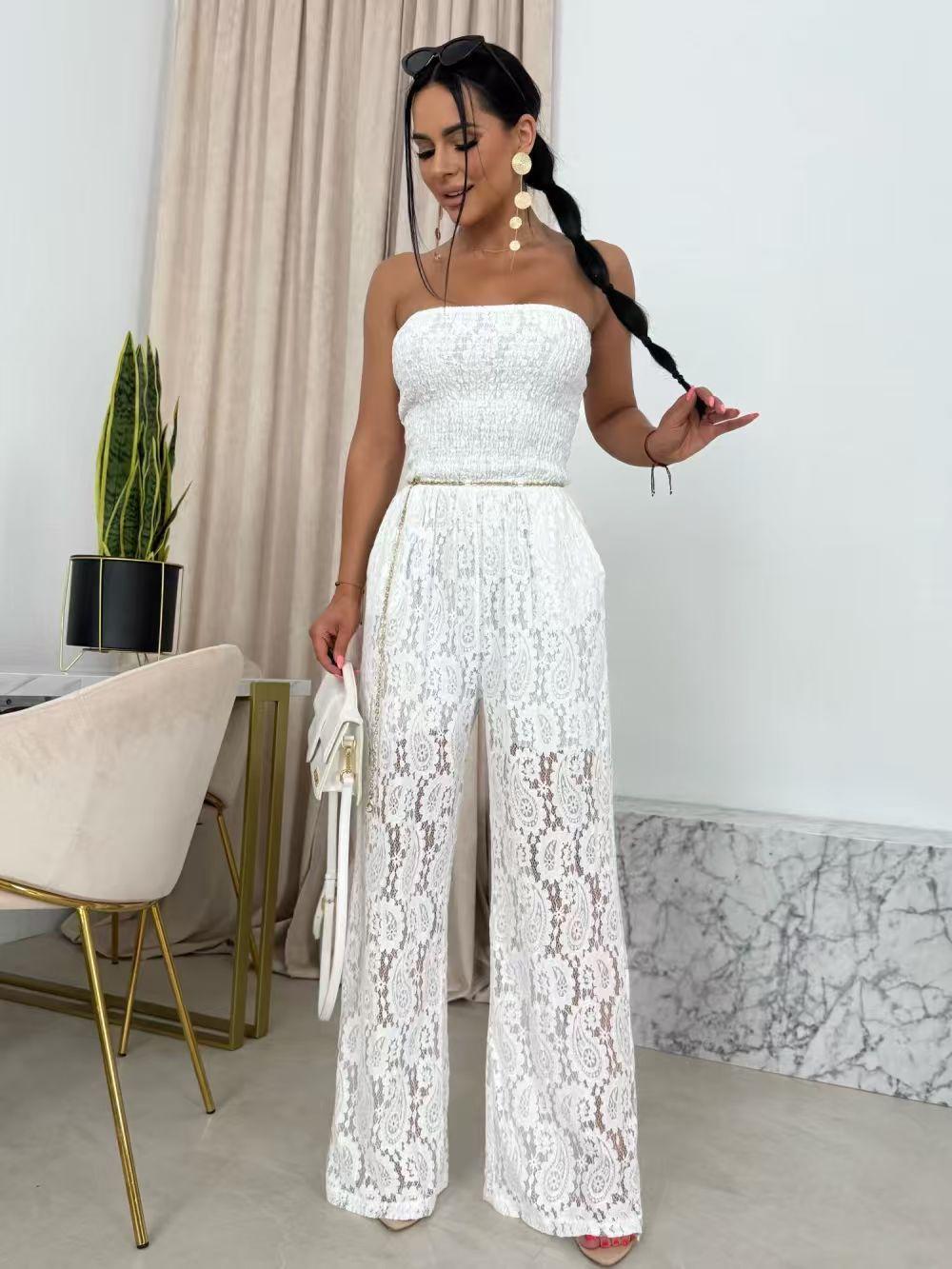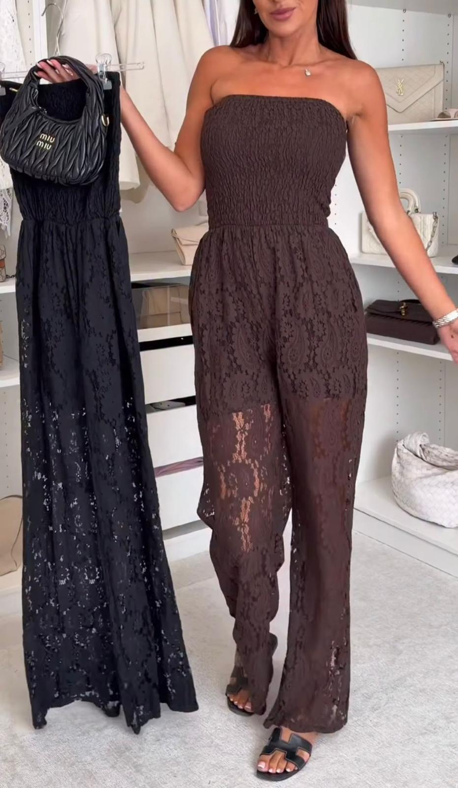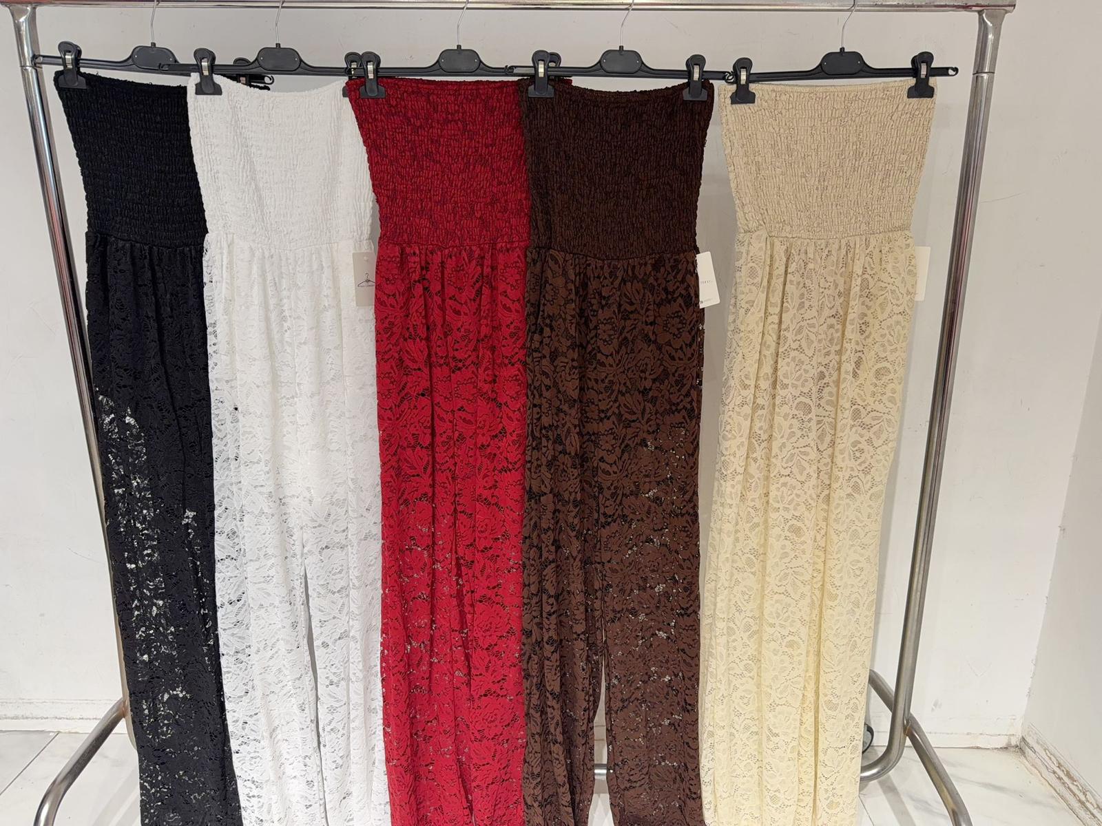 Mono encaje, talla única de la XS hasta la L aproximadamente.