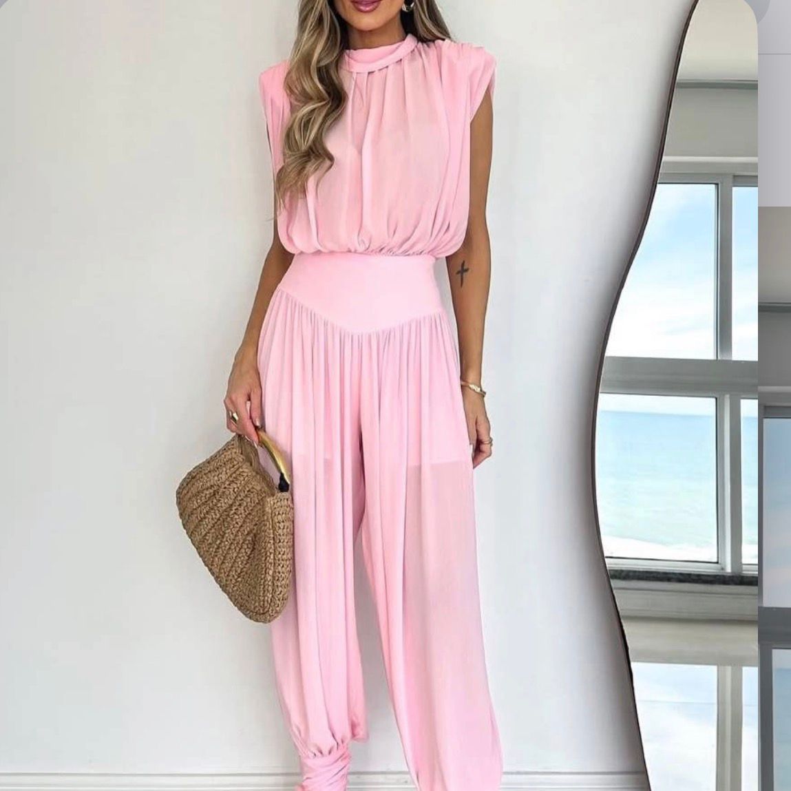 Conjunto body, pantalón de peño, talla única de la XS hasta la L aproximadamente.
