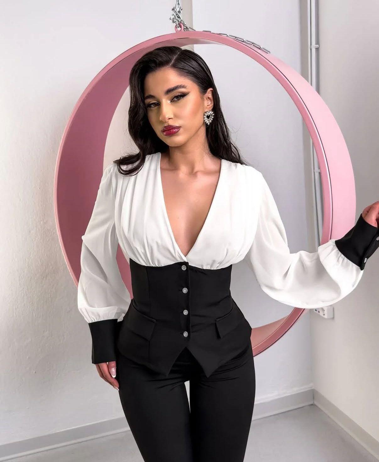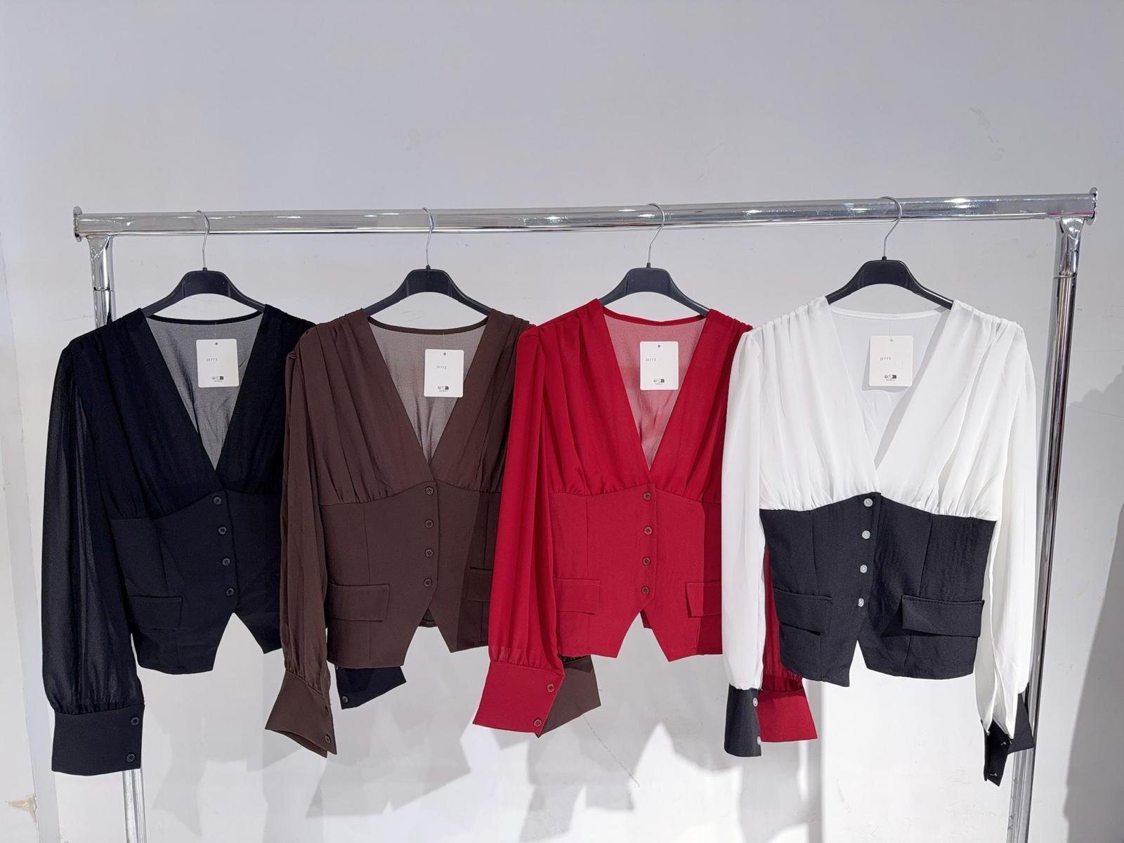 Blusa corset de botones, tejido de mangas en gasa, talla única de la XS hasta la L aproximadamente.