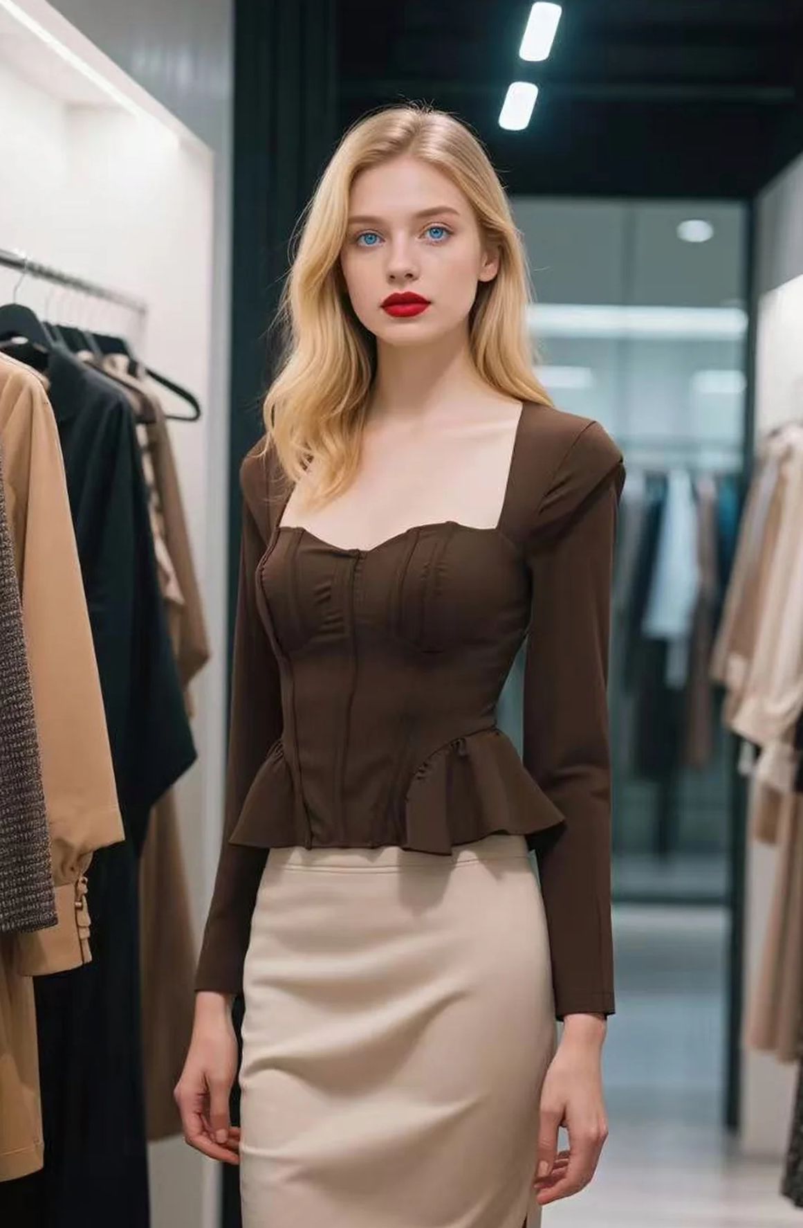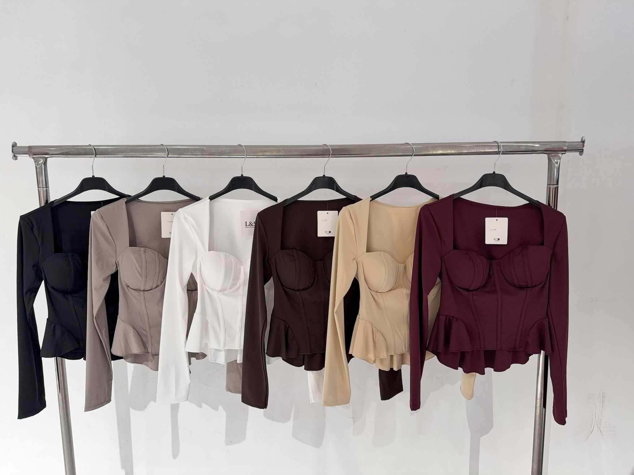 Blusa manga larga con escote cuadrado tipo corset, talla única de la XS hasta la L aproximadamente.