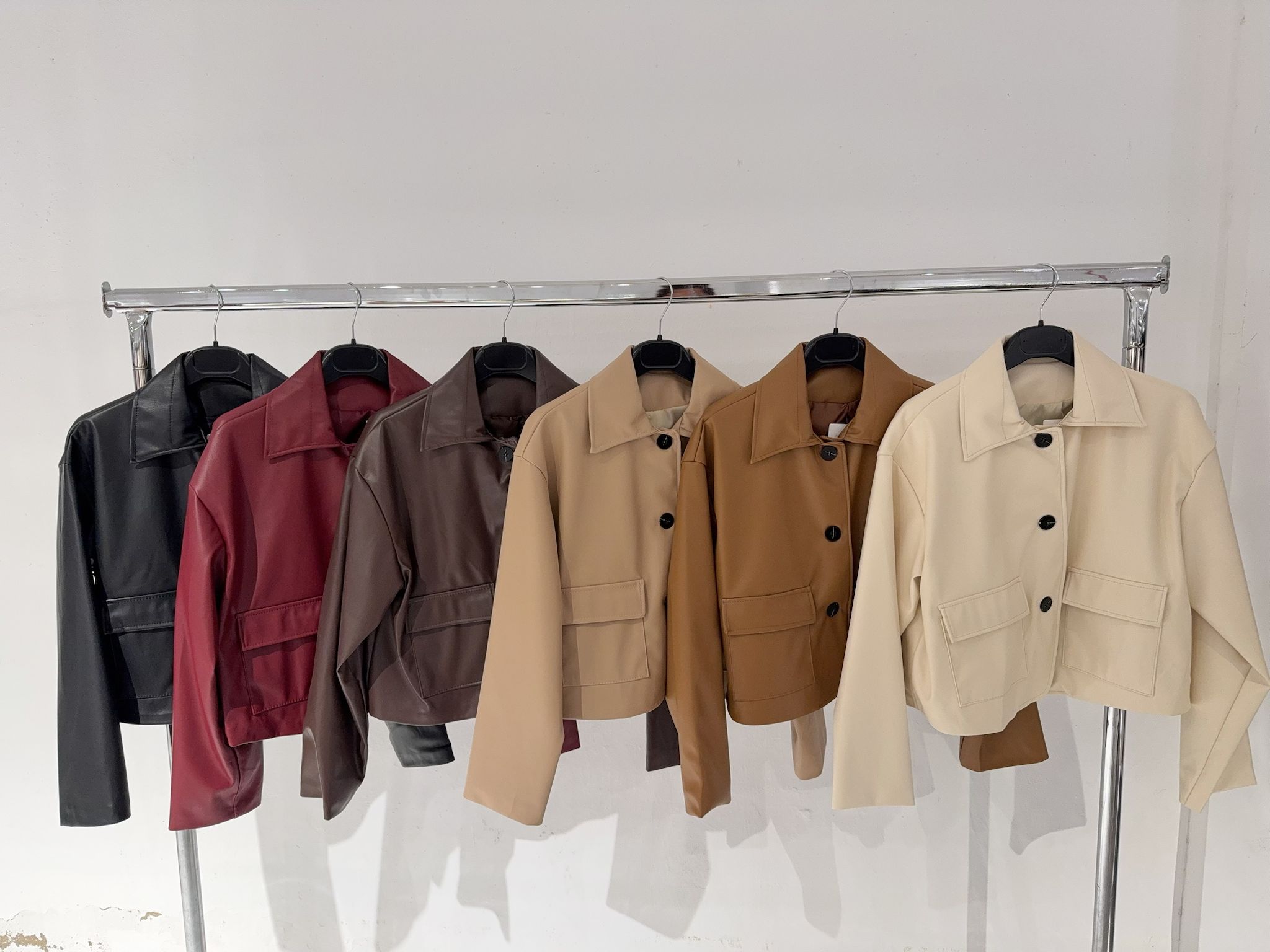 Chaqueta cuerina,talla única de la XS hasta la L aproximadamente.