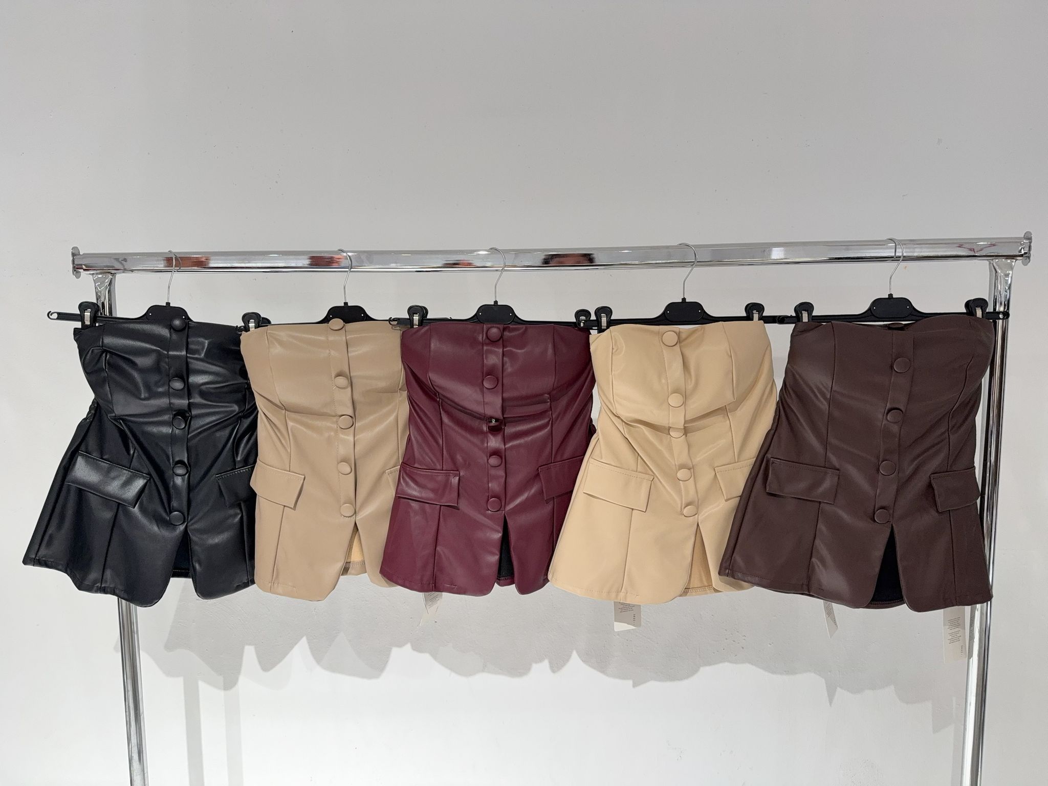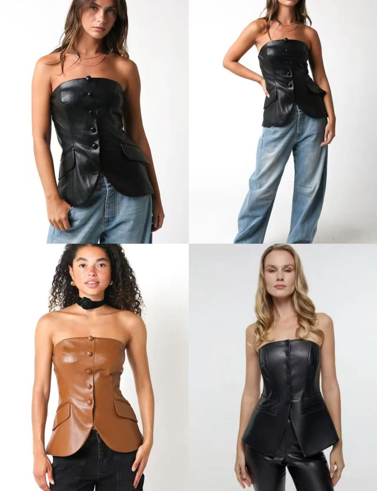 Top de botones, tejido polipiel, talla única de la XS hasta la L aproximadamente.