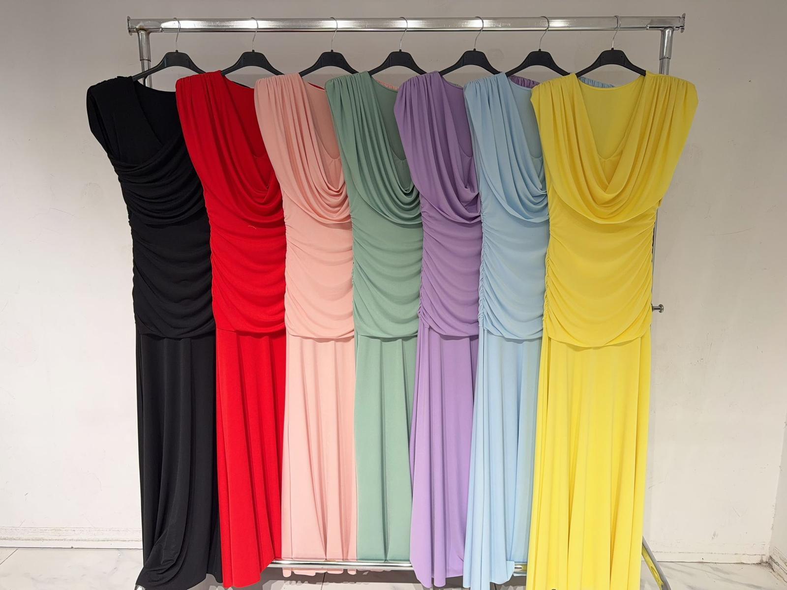Vestido licra fria, talla única de la XS hasta la L aproximadamente.