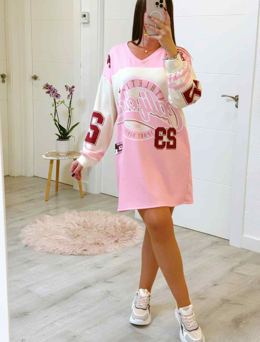 Vestido california talla única de la XS hasta la L aproximadamente.