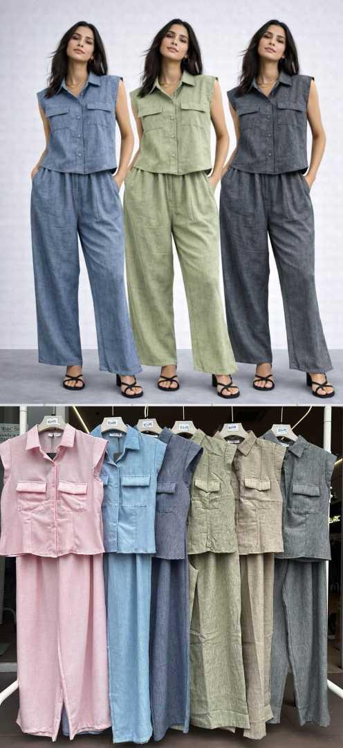 Conjunto de lino, talla única de la XS hasta la L aproximadamente.