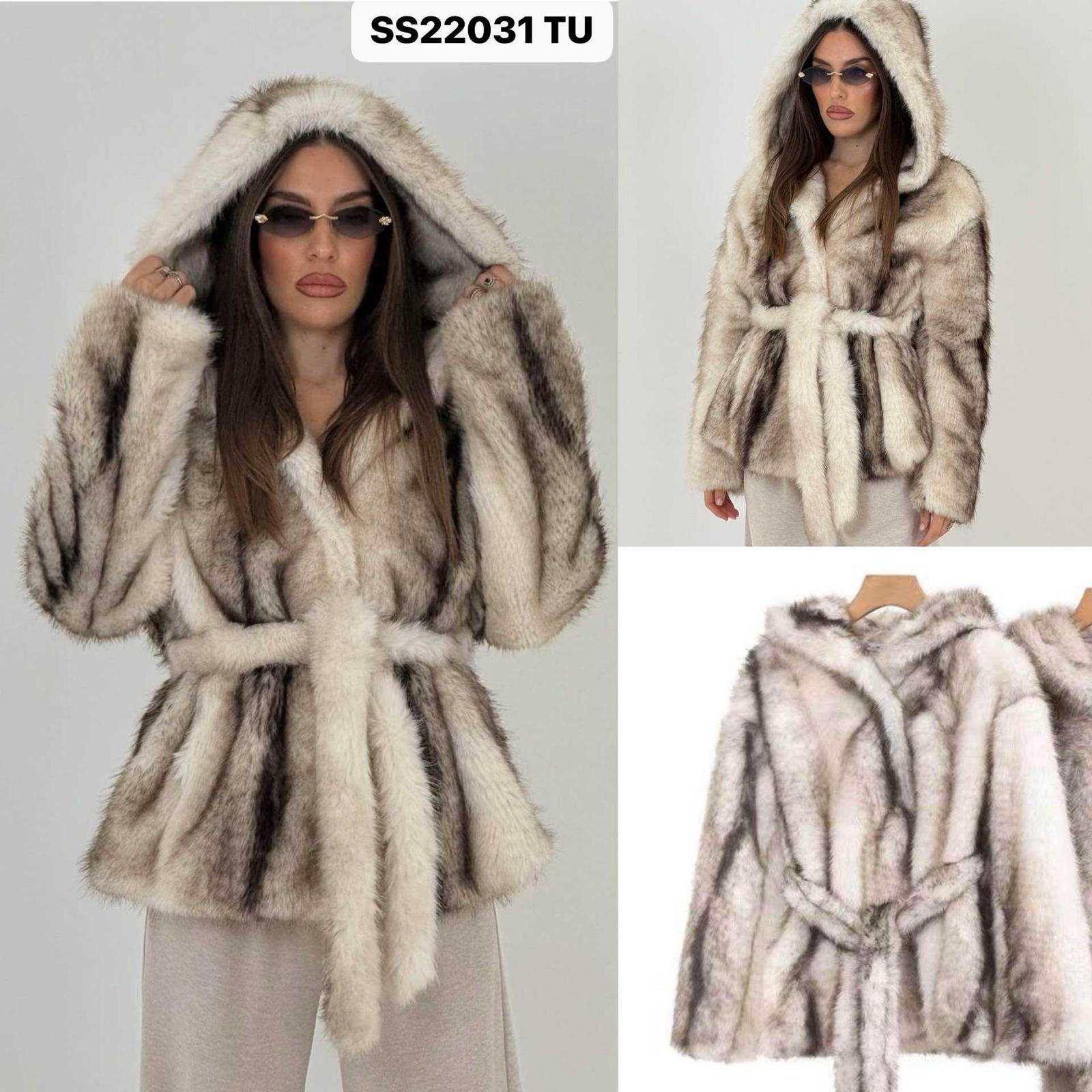 Abrigo de pelo talla única de la XS hasta la L aproximadamente.